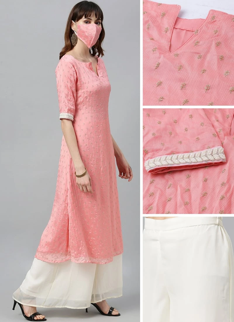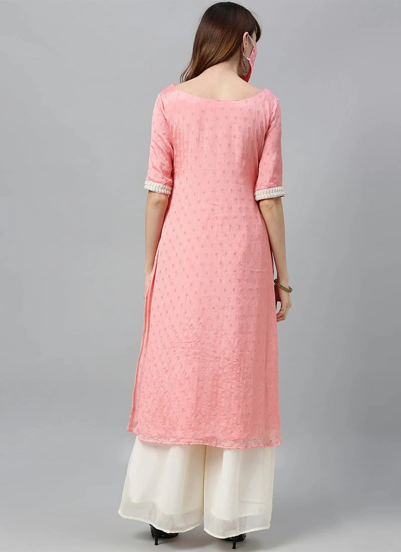 Pink Embroidered Calf Length Kurta Set After Six Wear