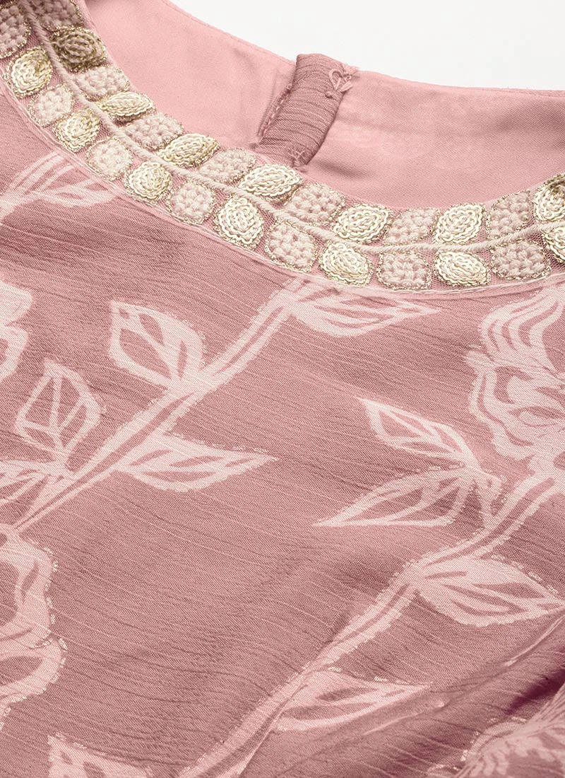 Pink Foil Print Chinnon N Beige Satin Kurta Sets After Six Wear