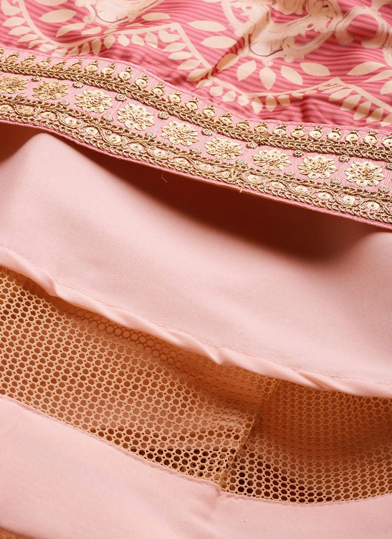 Pink Georgette Embroidered N Printed Kali Lehenga Festive Wear - Image 4