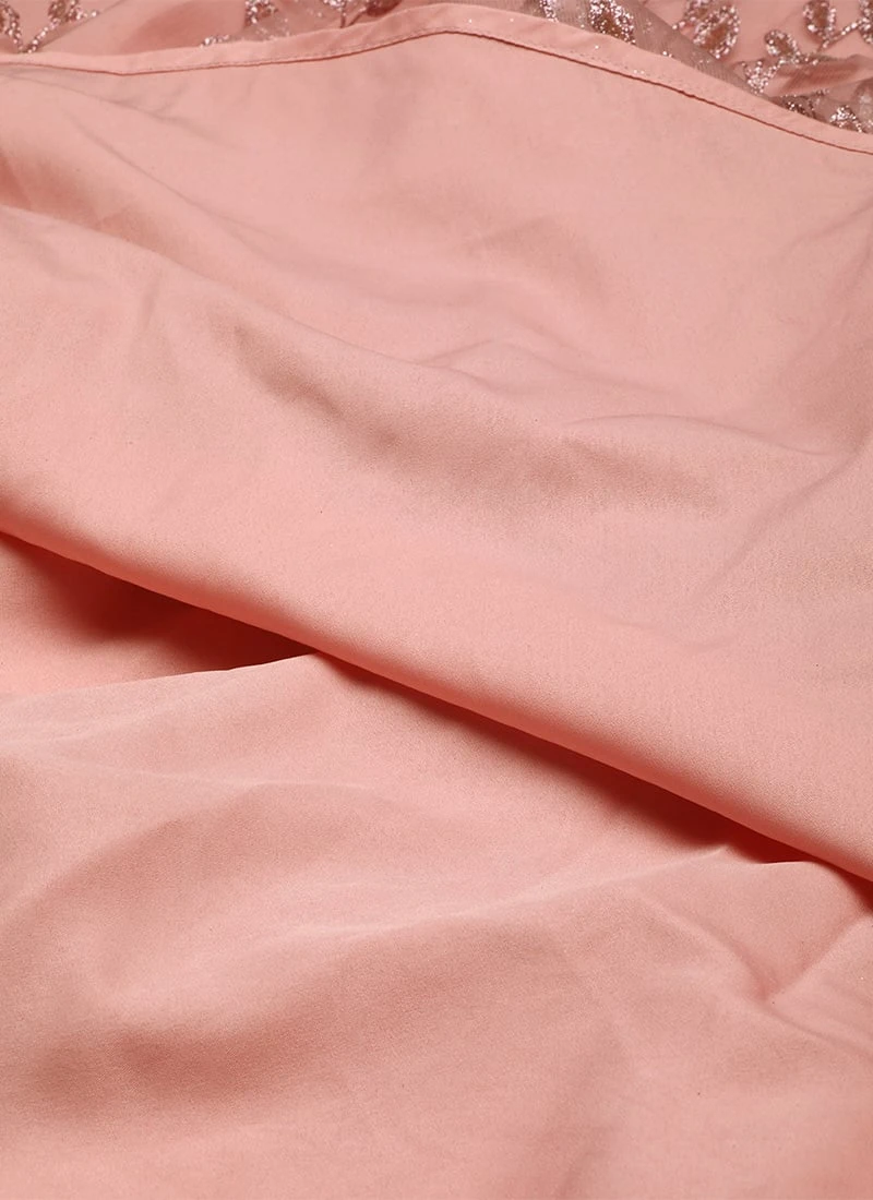 Pink Glitter Foil Tiered Gathers Dress Wedding Wear Party Wear