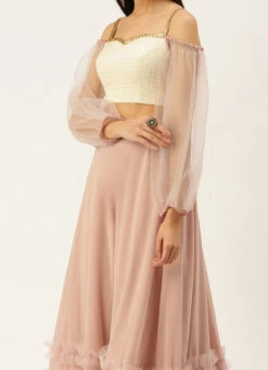 Be the first to review “Pink N White Off Shoulder Puff Sleeves Lehenga Party Wear” Cancel reply