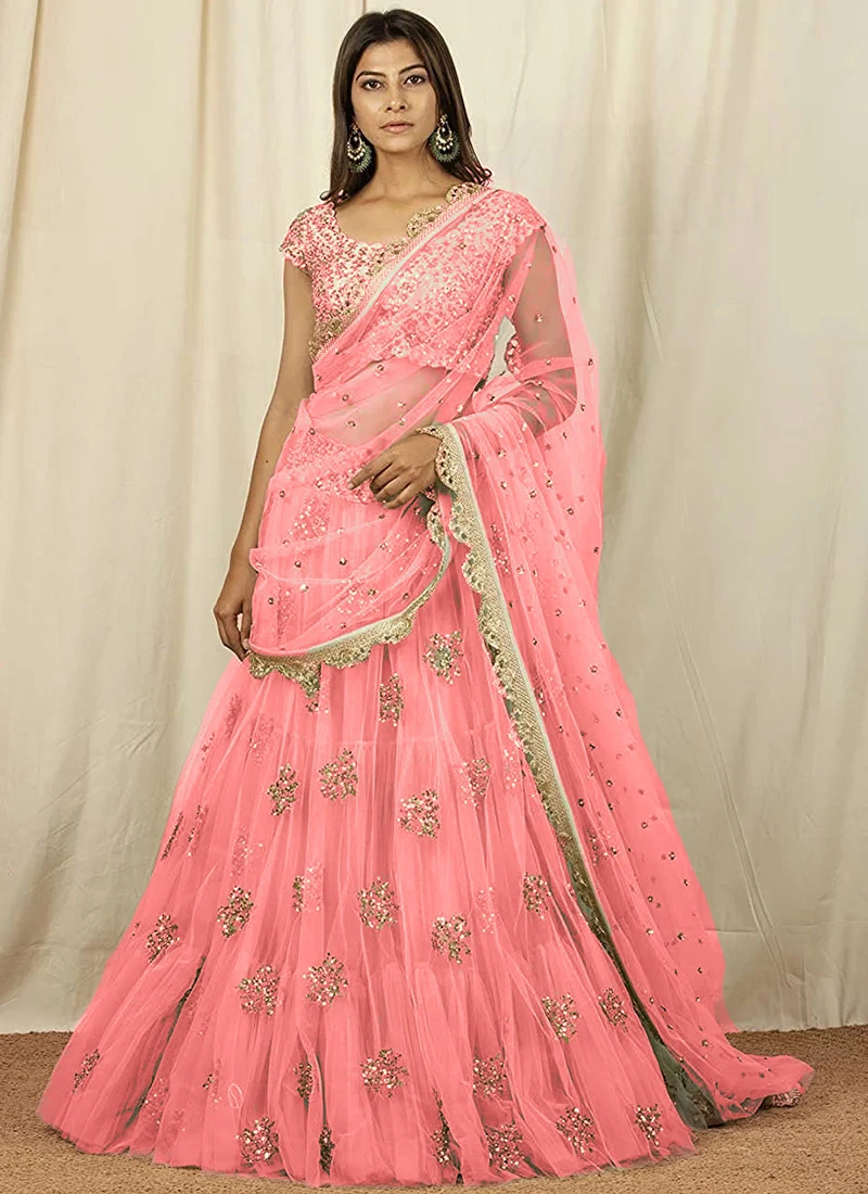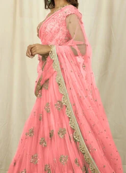 Pink Net Embroidered Umbrella Lehenga Choli Party Wear