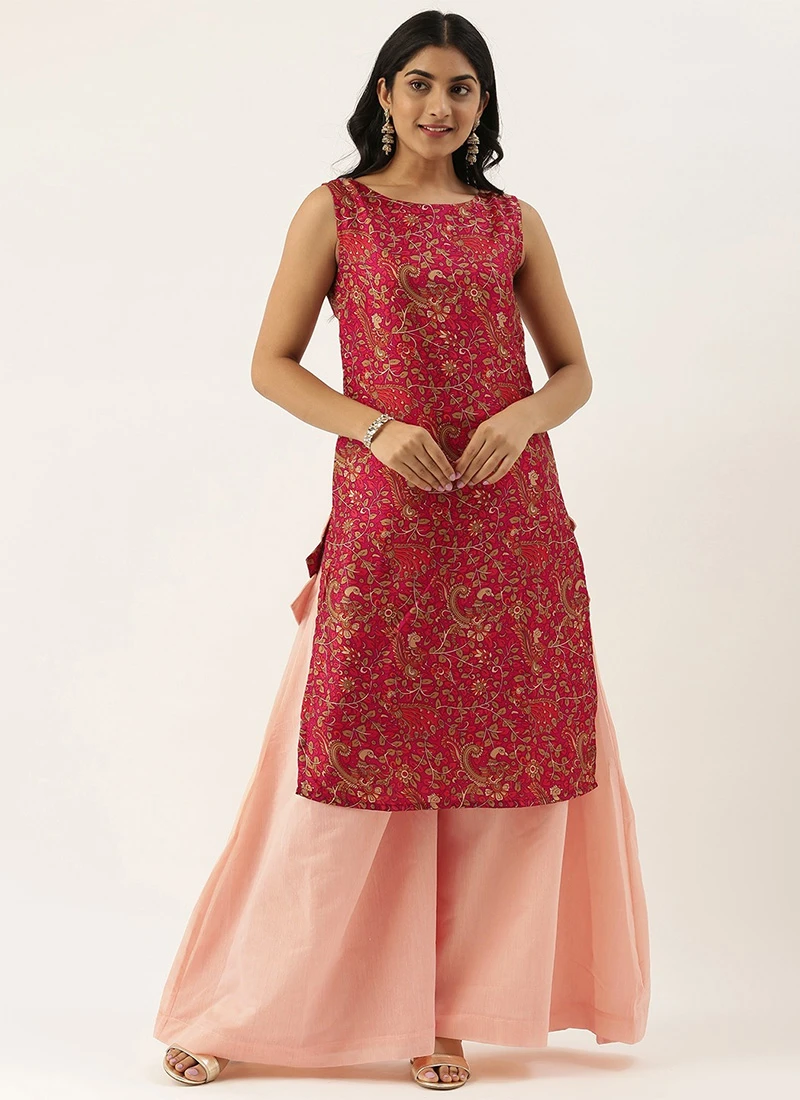 Pink Printed Boat Neck Kurta Set Festive Wear