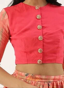 Pink Printed Rayon Jewel Neck Blouse Festive Wear