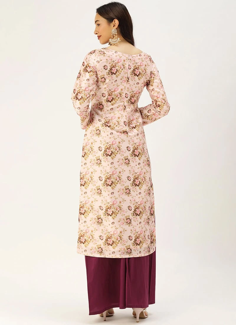 Pink Printed Top N Dark Purple Kurta Set After Six Wear