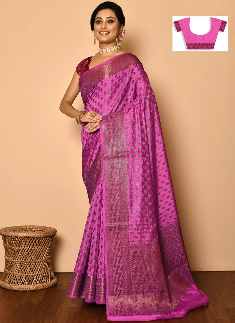 Pink Pure Silk Zari Work Saree Wedding Wear