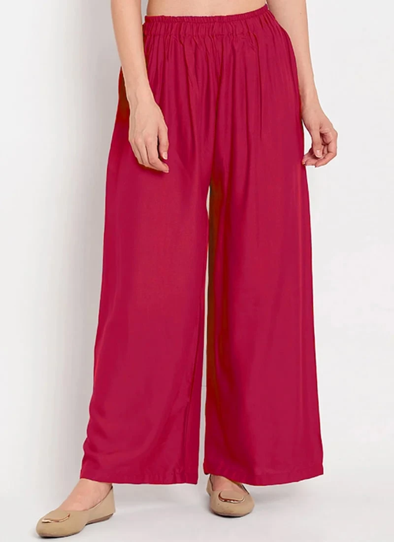 Pink rayon plain palazzo pant.