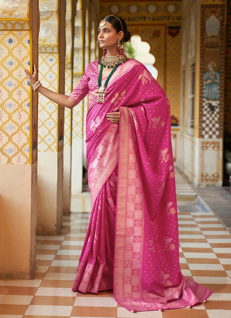Pink Smooth Silk Foil Printed Saree Festive Wear