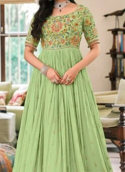Pista Green Georgette Embroidered N Stones Anarkali Suit Party Wear