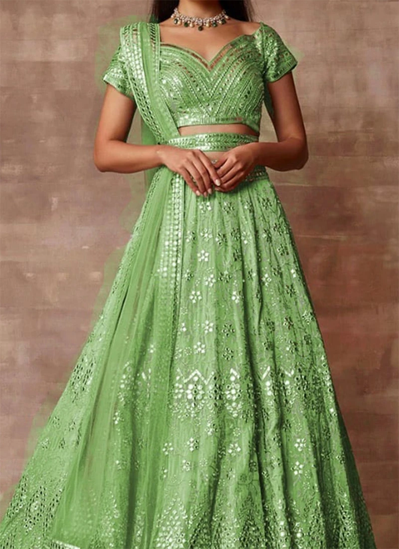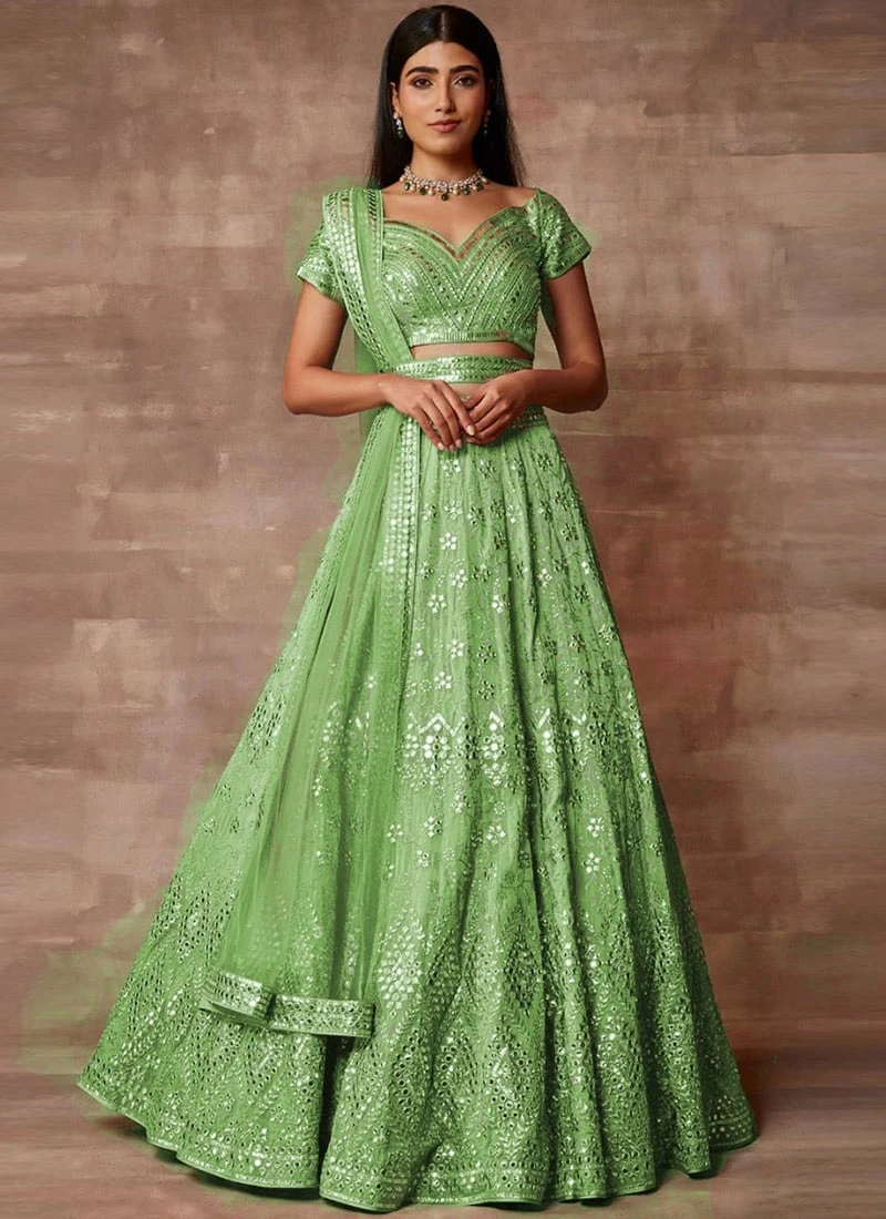 Note:The length of the lehenga is 42 inches, choli length is 14 to 15 inches and dupatta is 2.50 Meters.