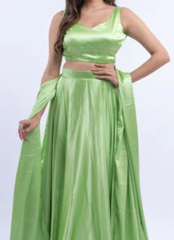 In essence the Pista Satin Umbrella Lehenga is a masterpiece that captures the essence of Indian heritage and contemporary elegance. Its exquisite craftsmanship luxurious fabric and timeless design make it a symbol of sophistication and grace. Wearing this lehenga is not just about donning a garment its about embracing a legacy of artistry and celebrating the fusion of tradition and modernity in the world of fashion.
