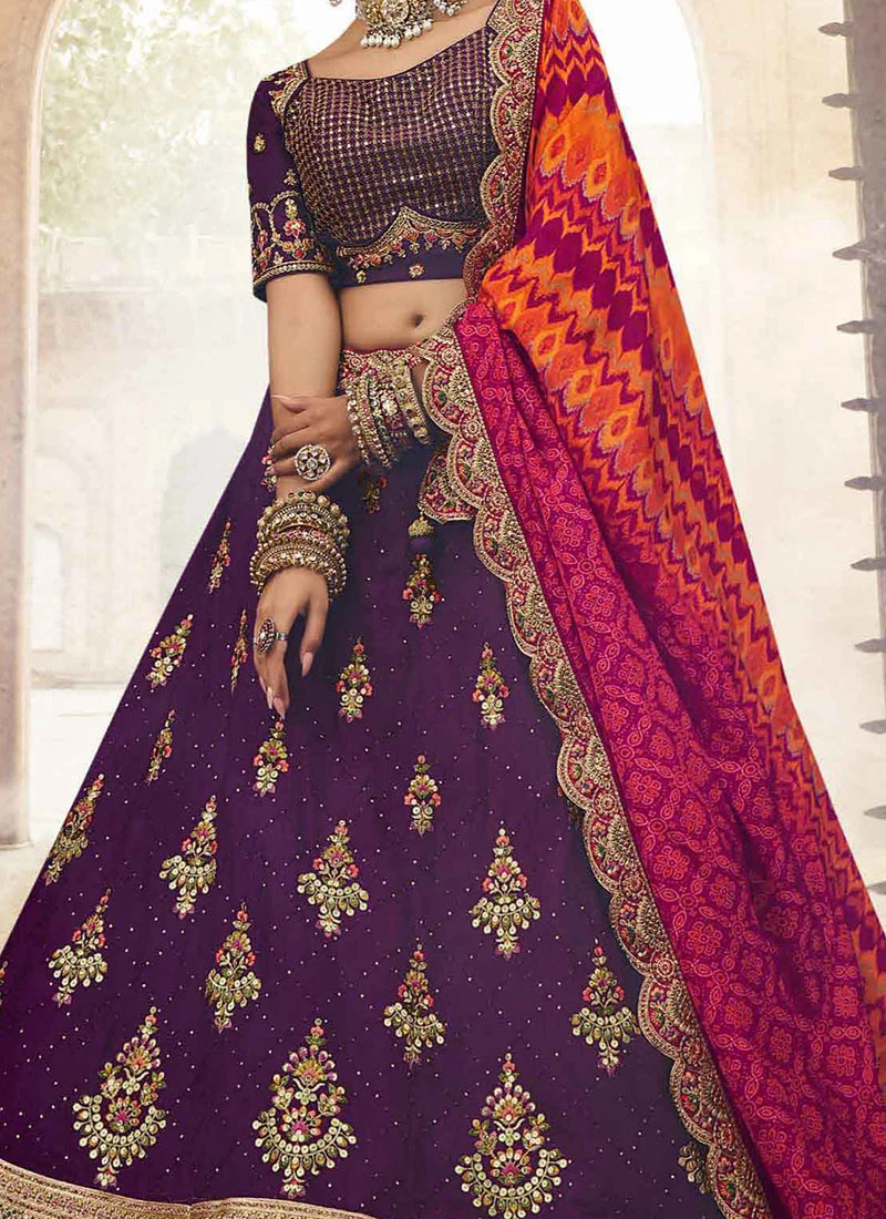 Purple Banarasi Silk Embroidered Umbrella Lehenga Wedding Wear