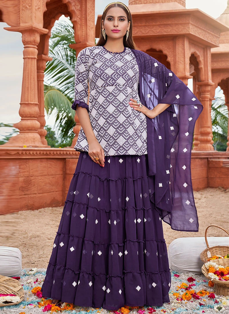 Comes with semi -stitched lehenga, un stitched choli and dupatta fabric. To have it stitched, please select the custom tailoring options. Lehenga with elaborate patterns and colors are used for photo-shoot. Color and pattern of the lehenga might not be as shown in the image.
