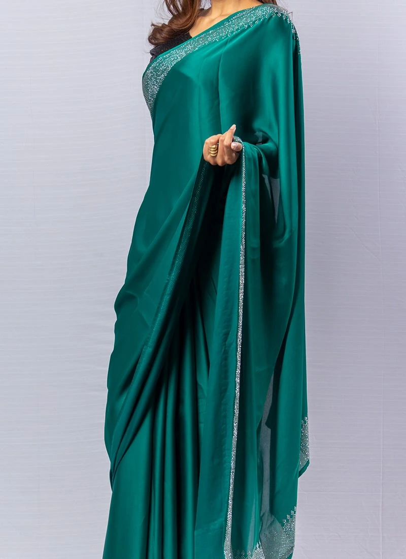Comes with unstitched blouse fabric. To have the blouse stitched, please select the custom tailoring options. Blouses with elaborate patterns and colors are used for photo-shoot. Color and pattern of the blouse might not be as shown in the image.