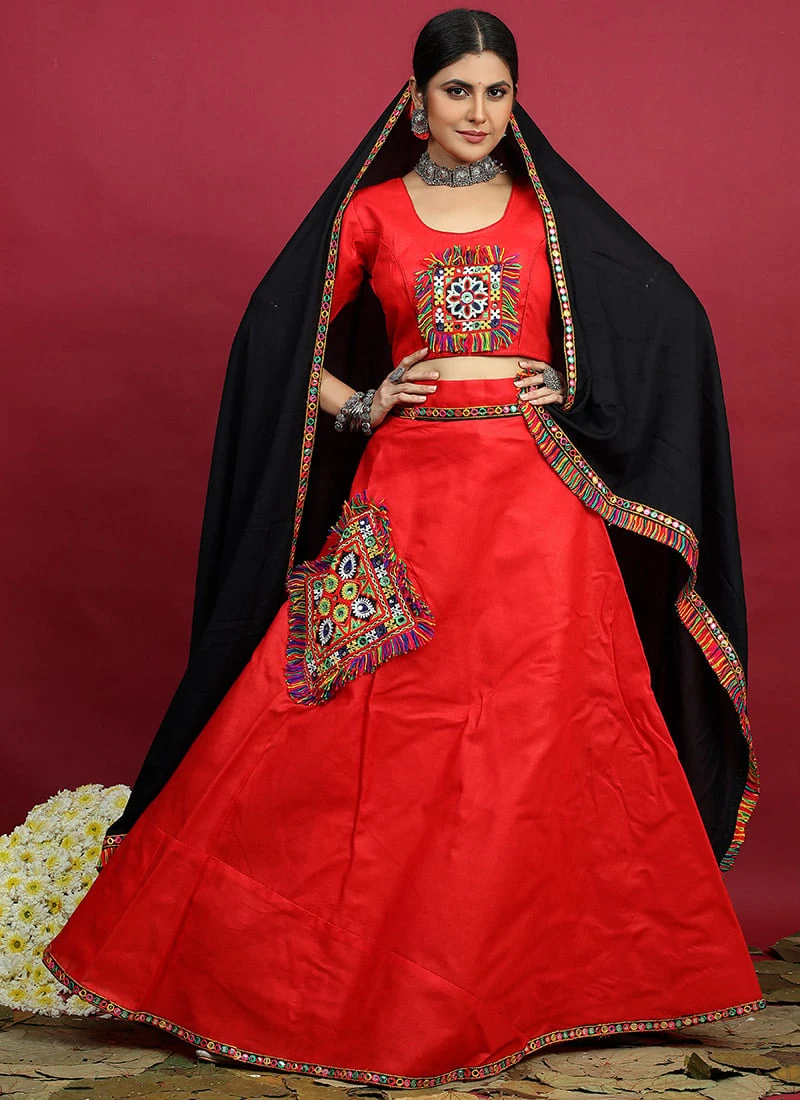 Red Blended Kutch N Mirror Work Chaniya Choli Festive Wear