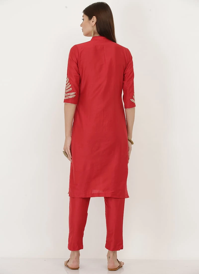 Red Cotton Silk Embroidered Kurta Straight Pant Set After Six Wear