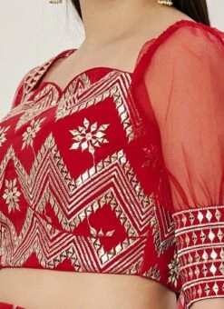 Red Embroidered Zero Shoulder Neckline Blouse Wedding Wear