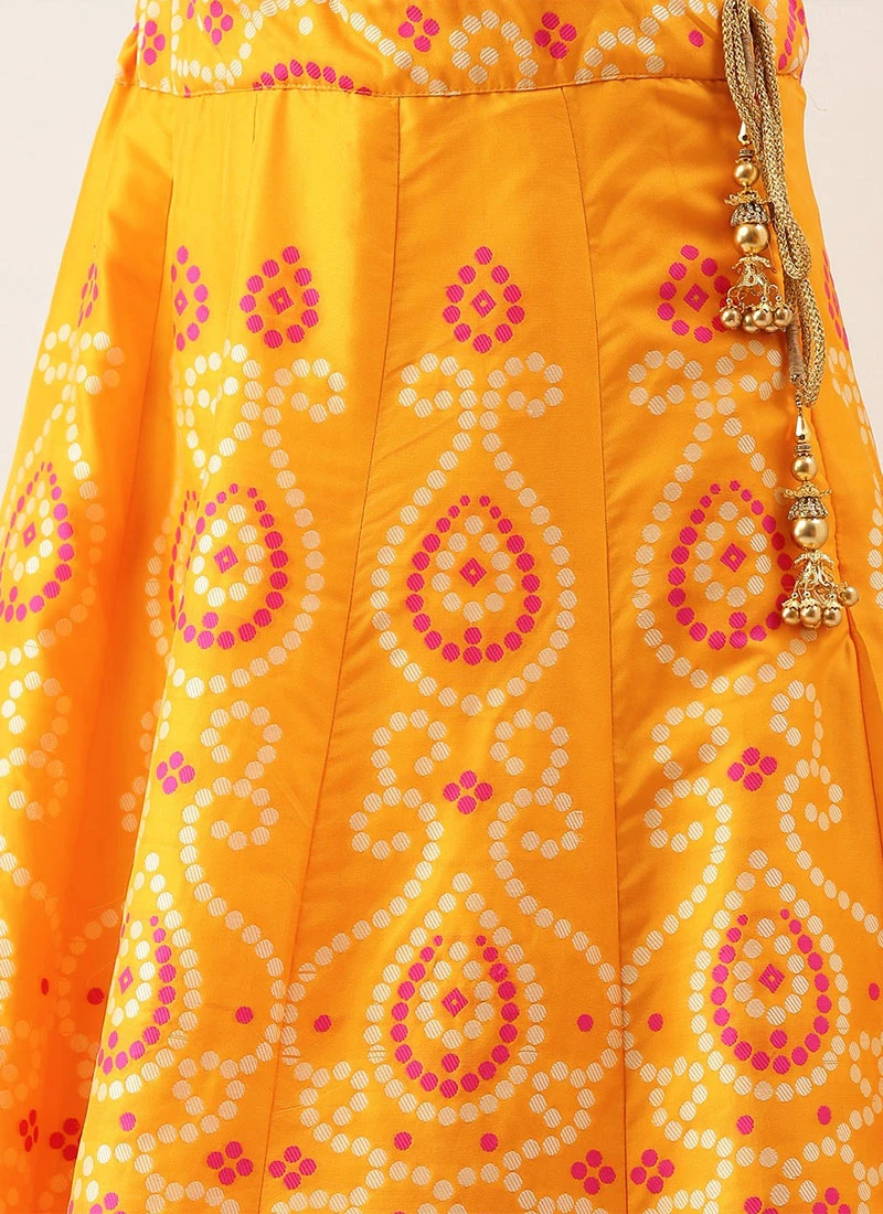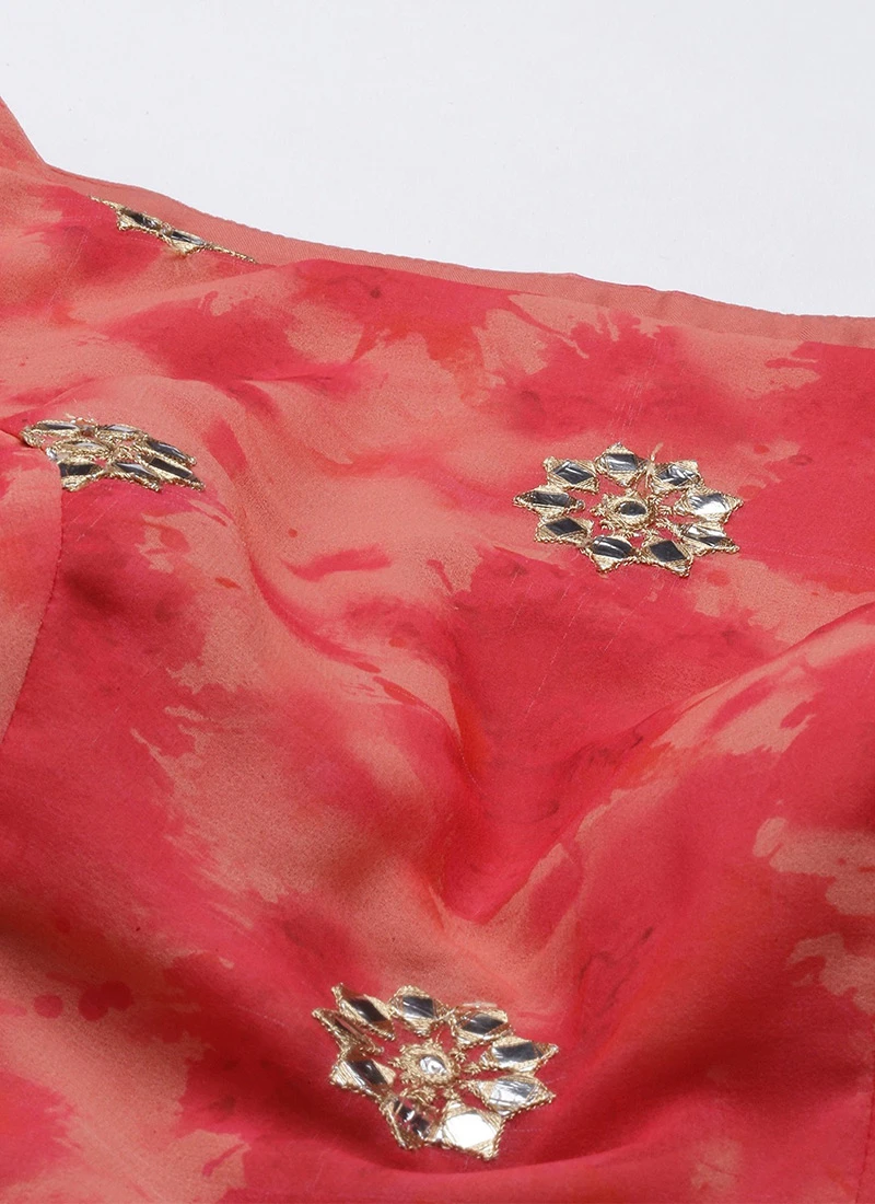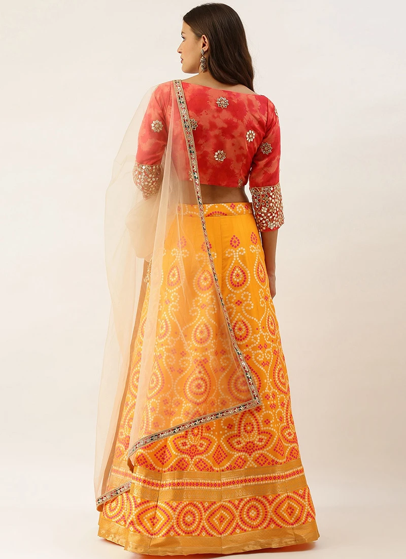 Red Gota N Yellow Jacquard Kali Lehenga Festive Wear