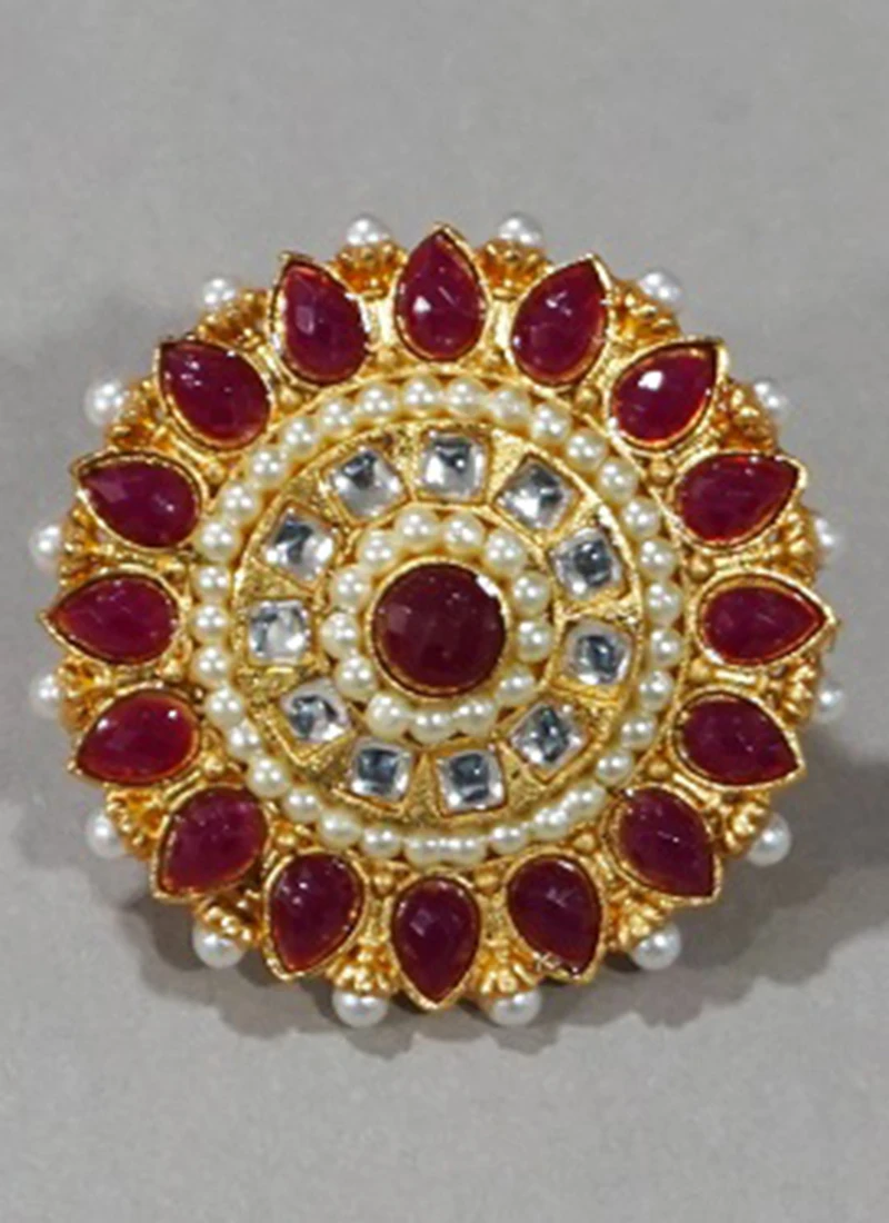 Red Kundan Ring Party Wear