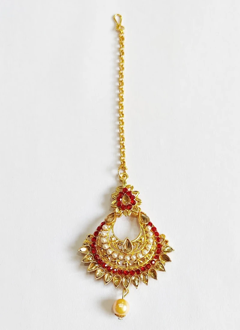 Red N White Kundan Chaandbali Style Mangtikka Festive Wear