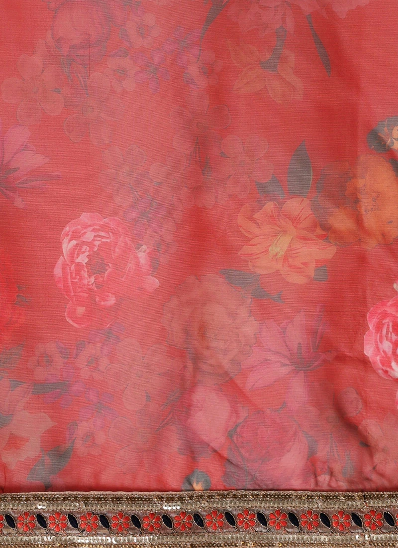 Red Organza Digital Printed Saree N Yellow Blouse Festive Wear