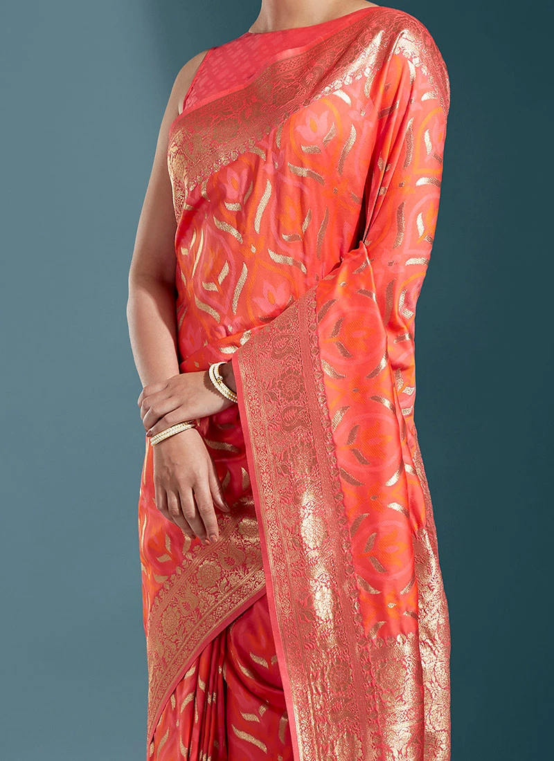Red Satin Zari Woven Work Saree Festive Wear