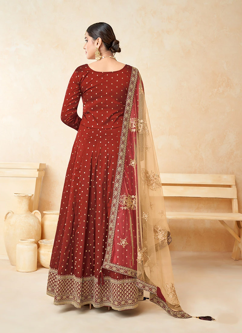 Red Taffeta Embroidered Anarkali Suit Party Wear