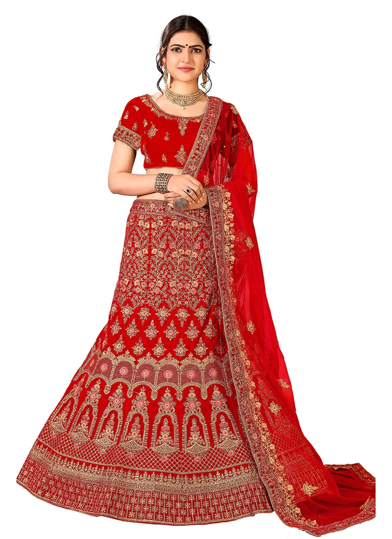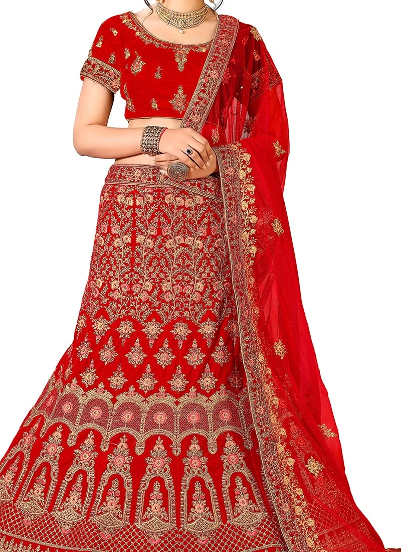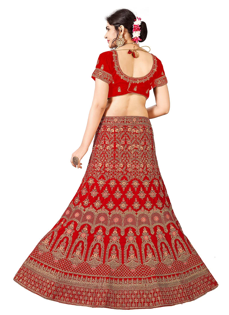 Comes with semi -stitched lehenga, un stitched choli and dupatta fabric. To have it stitched, please select the custom tailoring options. Lehenga with elaborate patterns and colors are used for photo-shoot. Color and pattern of the lehenga might not be as shown in the image.
