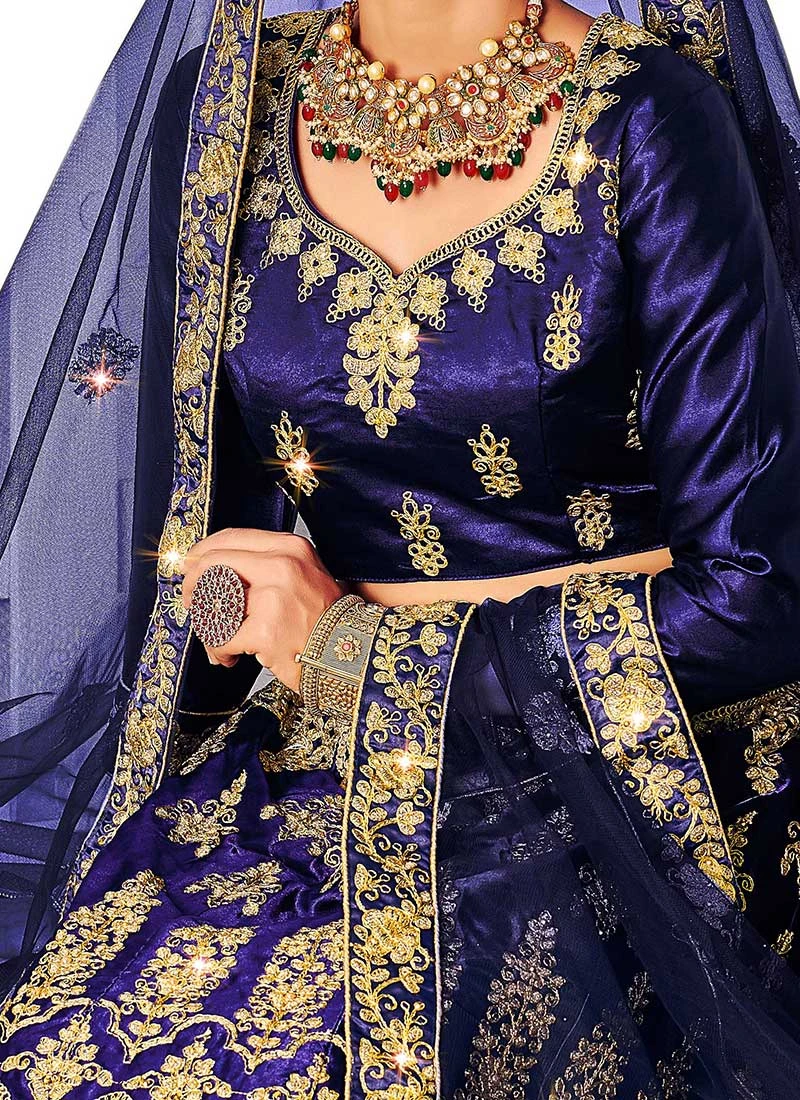 Royal Blue Satin Silk Zari Embroidery Umbrella Lehenga Party Wear