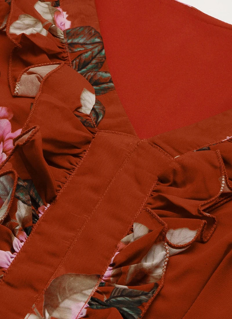 Rust Georgette Digital Printed Gown After Six Wear - Image 2
