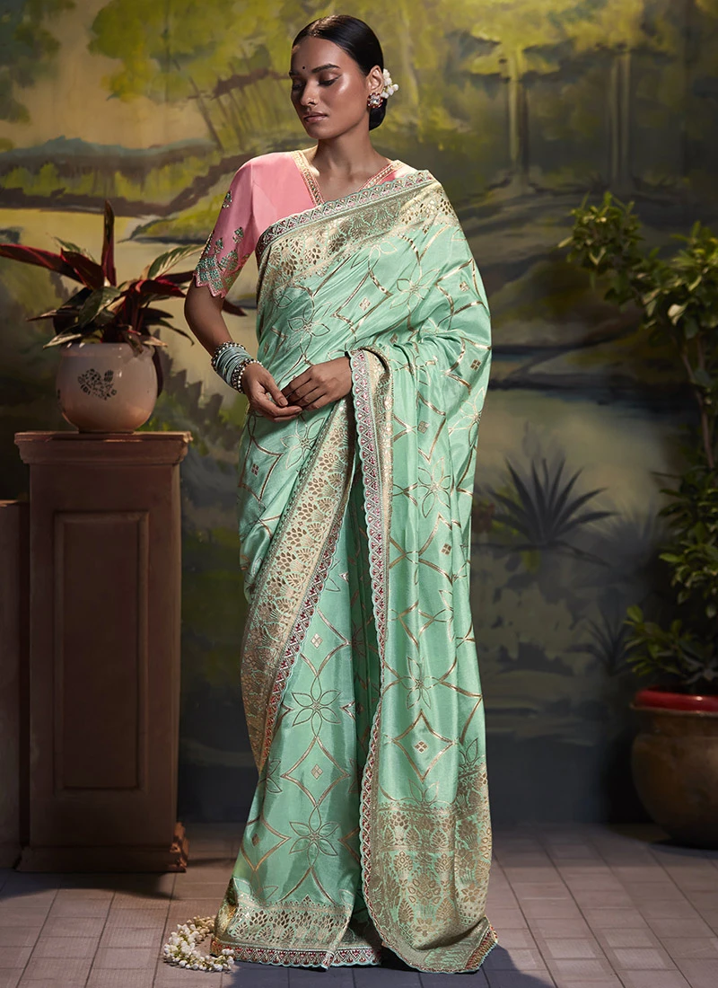 Sea Green Benarasi Silk Zari Work Saree Wedding Wear