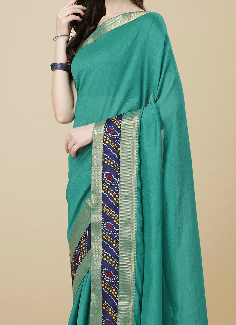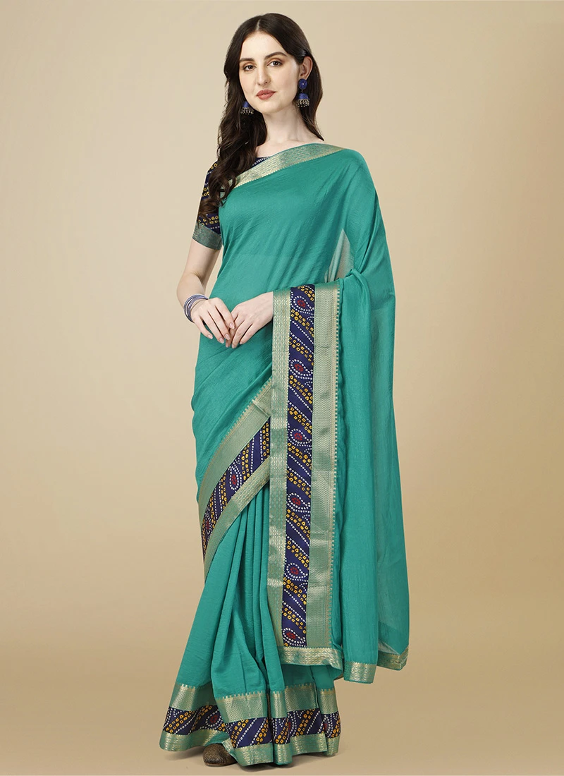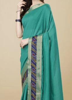 Silk Turquoise Green Color Silk Saree Festive Wear
