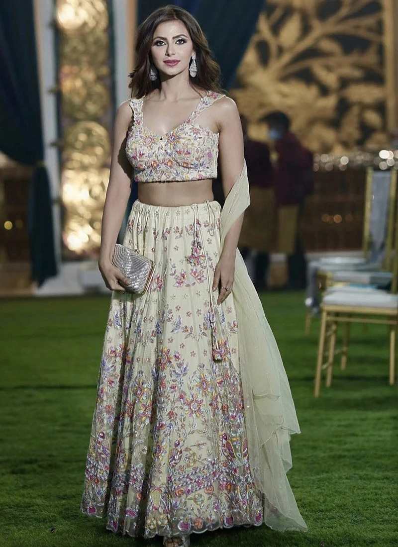 This silver color silk fabric clutch decorative with hand embroidered with bugle beads work on one side and comes with long sling chain.