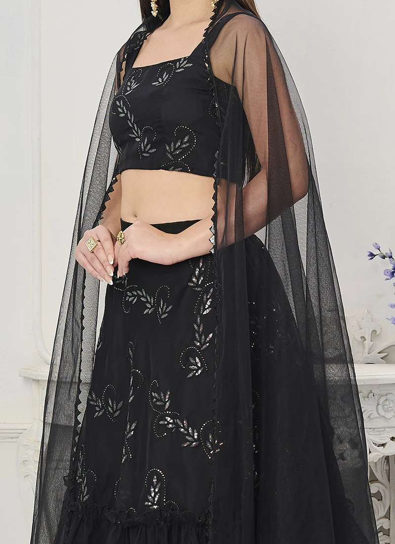 Skirt From Black Embroidered Organza Lehenga After Six Wear -ZariGrace Shop Black Embroidered Organza Lehenga GHBS02301988 b