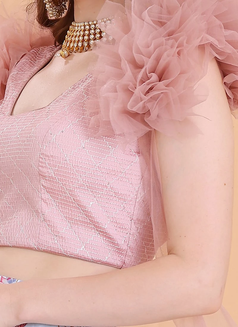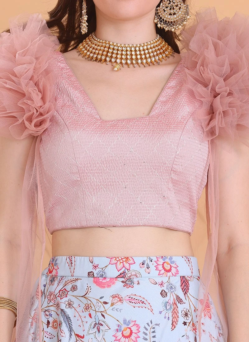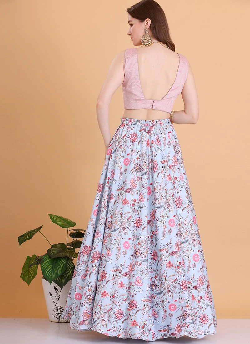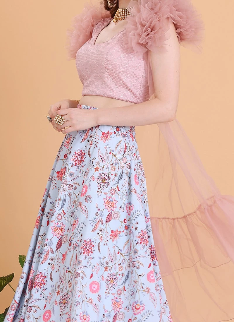Skirt From Blue N Pink Embroidered Lehenga With Jacket After Six Wear