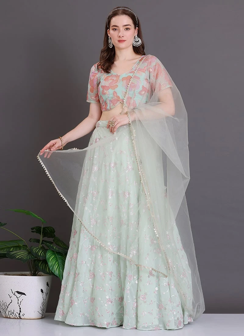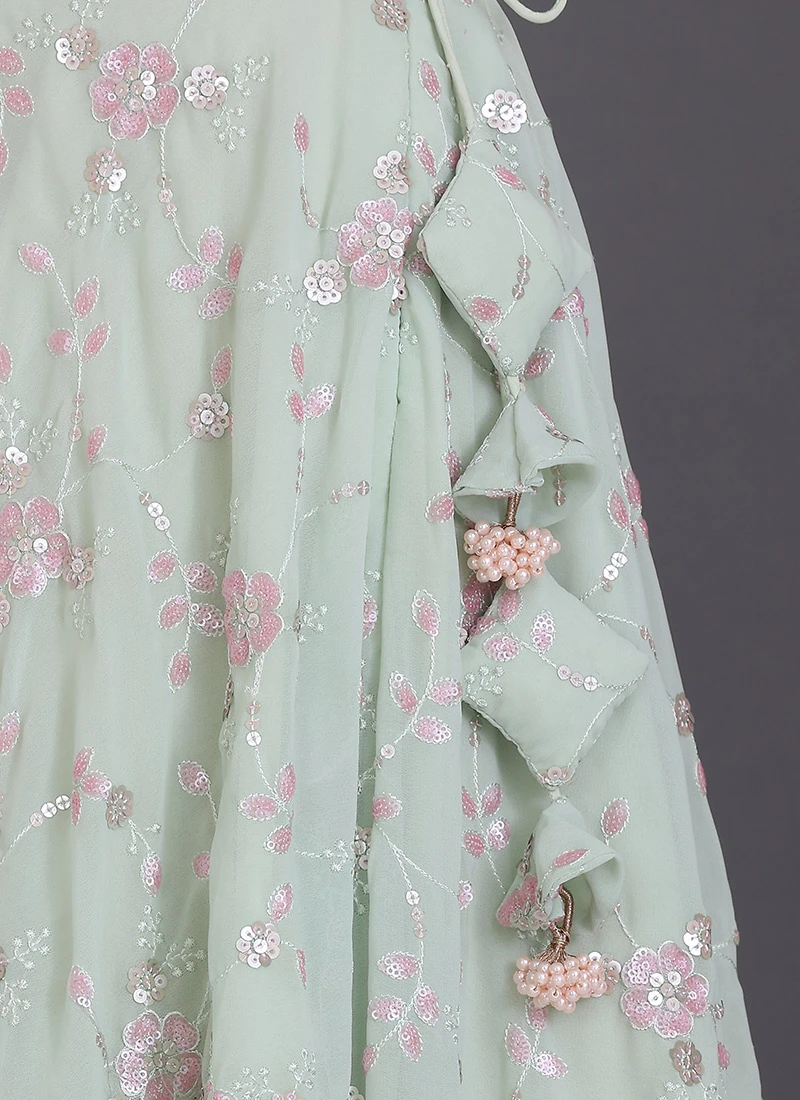 Skirt From Green Sequins Georgette Lehenga Set After Six Wear