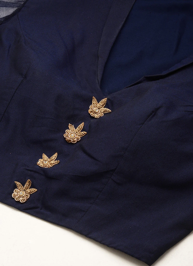 Skirt From Peach Jacquard N Navy Blue Art Silk Skirt Set After Six Wear