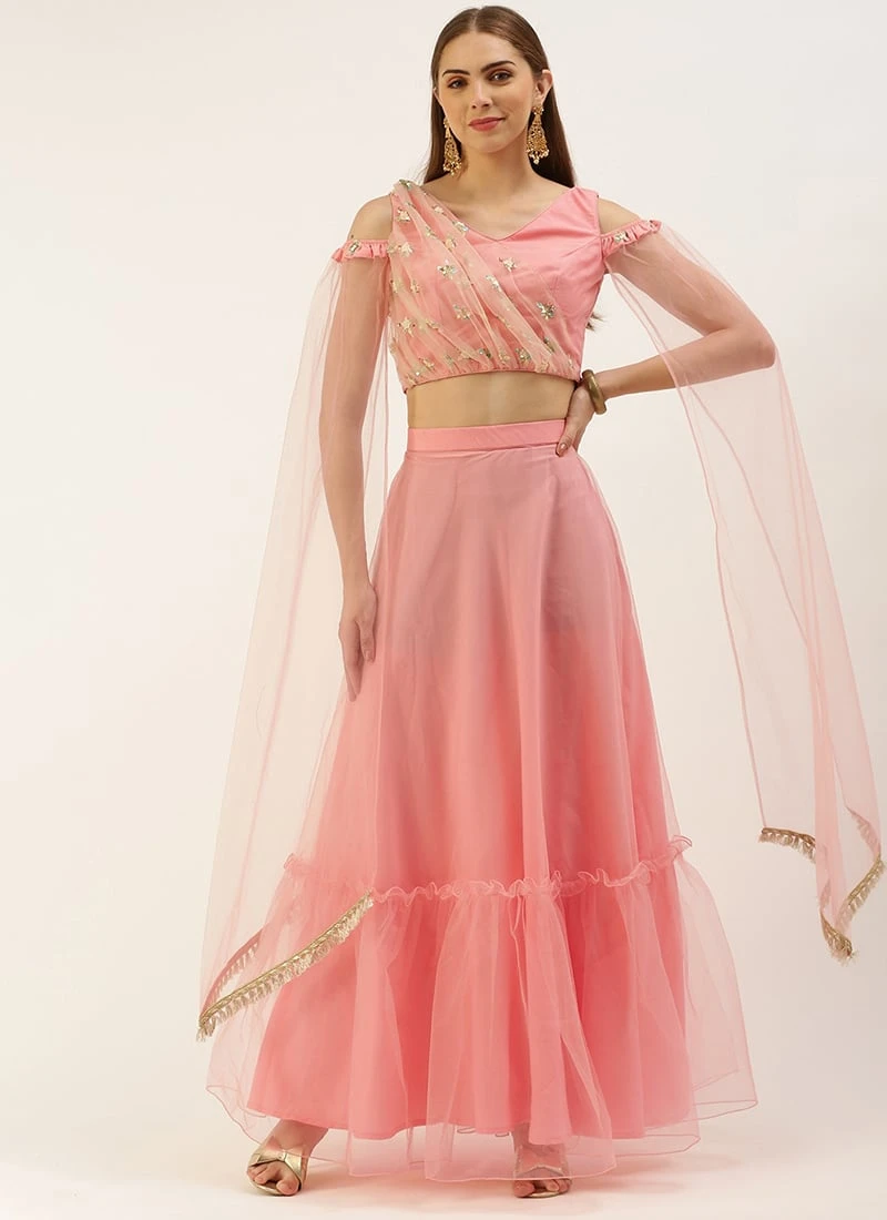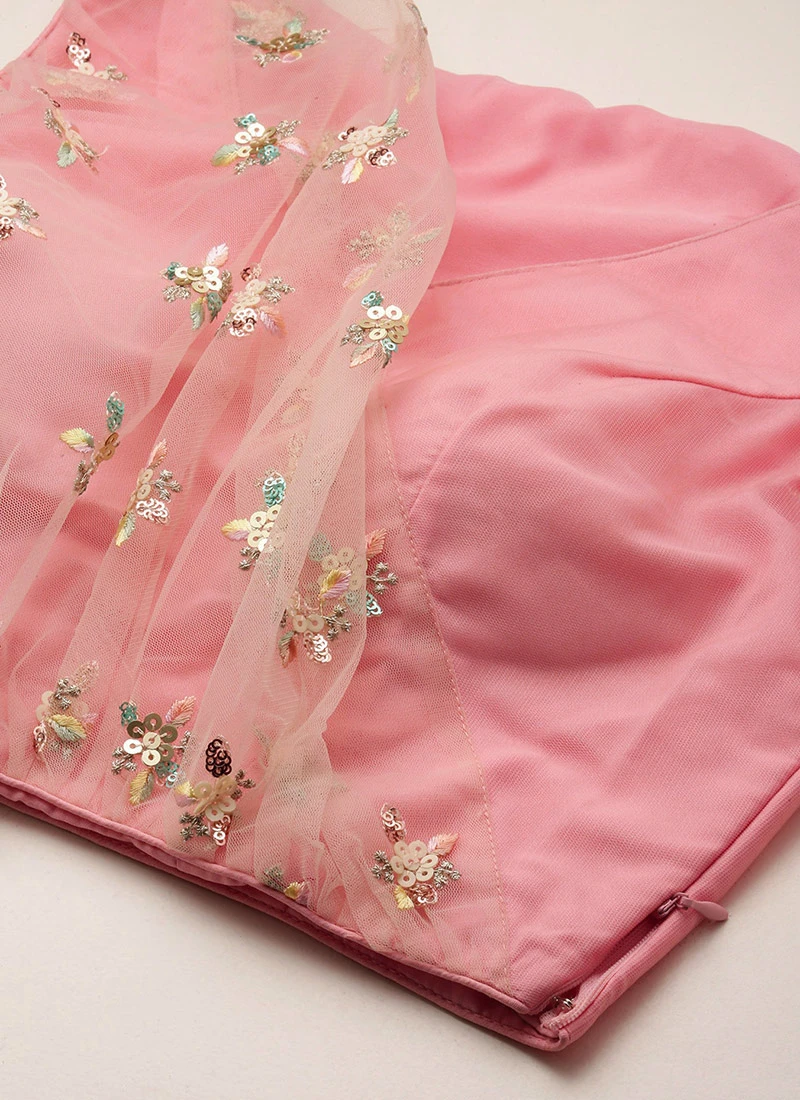 Skirt From Peach N Pink Net Embroidered Skirt Set After Six Wear -ZariGrace Shop Peach N Pink Net Embroidered Skirt Set IWBS02212524 u