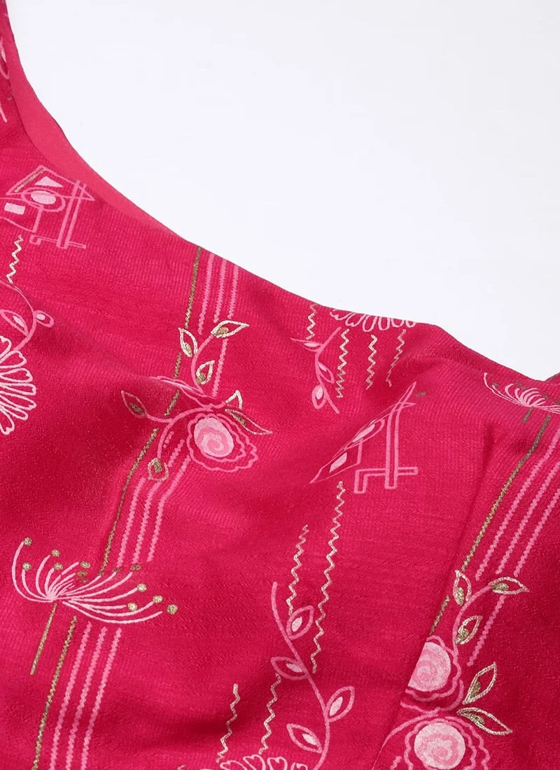 Skirt From Pink Art Silk Foil Printed Skirt Set After Six Wear