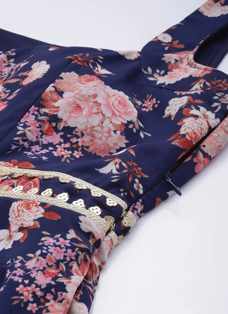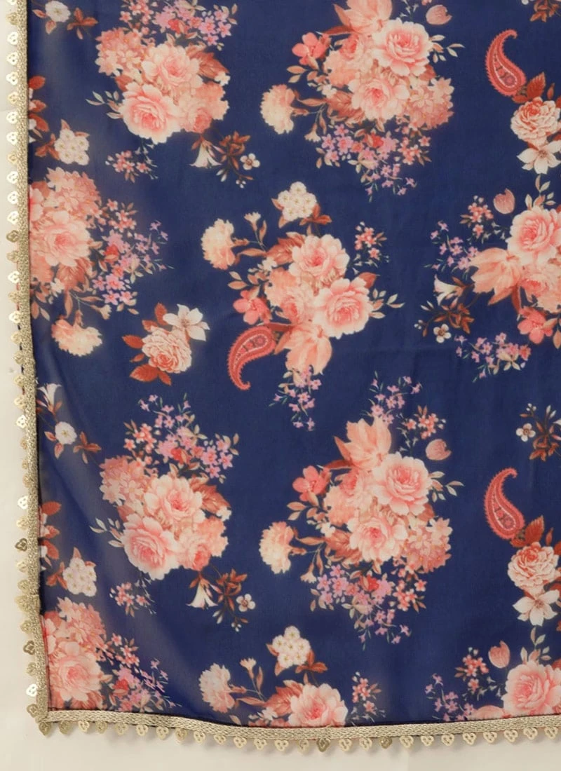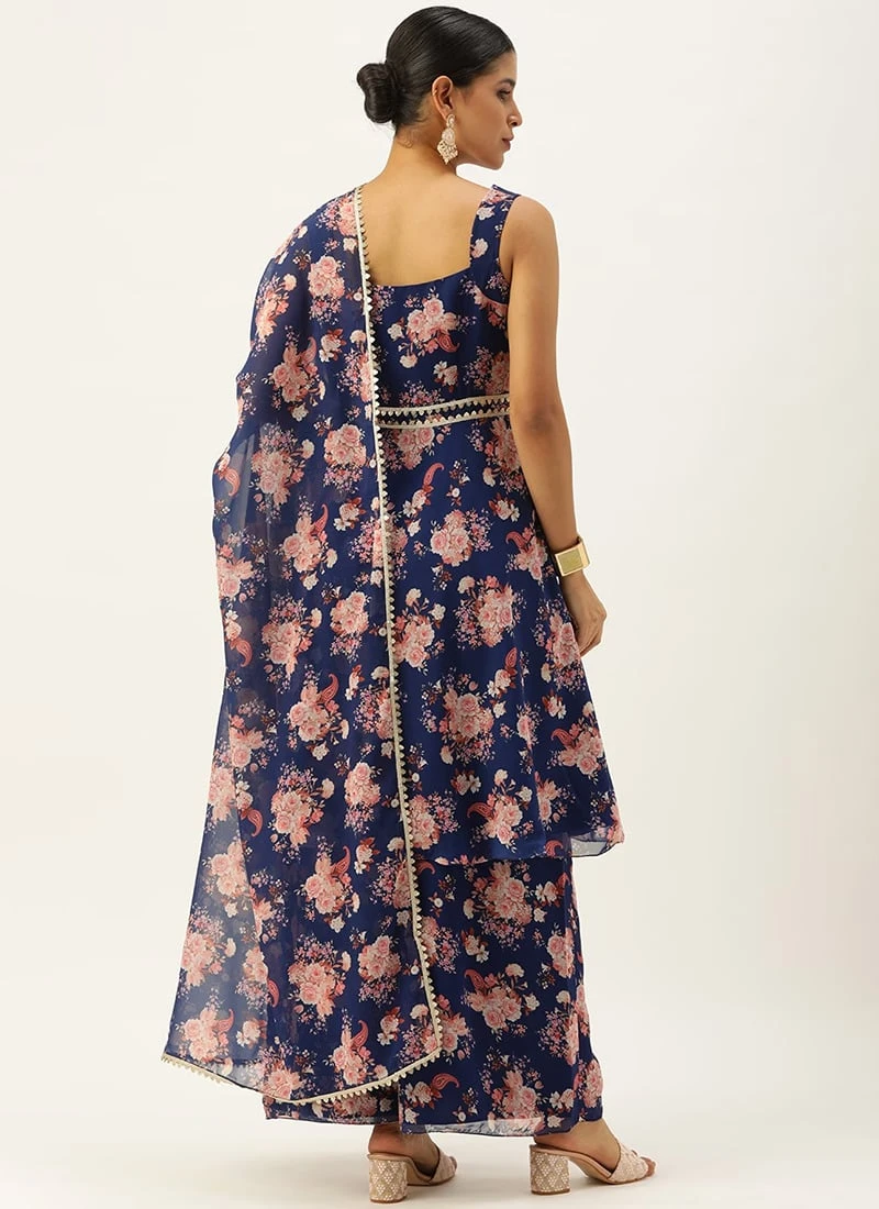 Top From Blue Georgette Printed Palazzo Suit After Six Wear