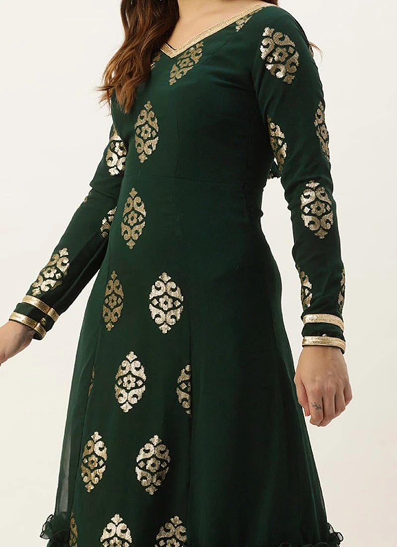 Top From Green Embroidered Anarkali Suit Set After Six Wear