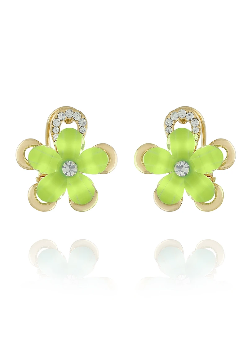 Gold plated studs with white stones studded all over the decorative green floral design. The dimensions of the actual product is Length – 2.5 cms.