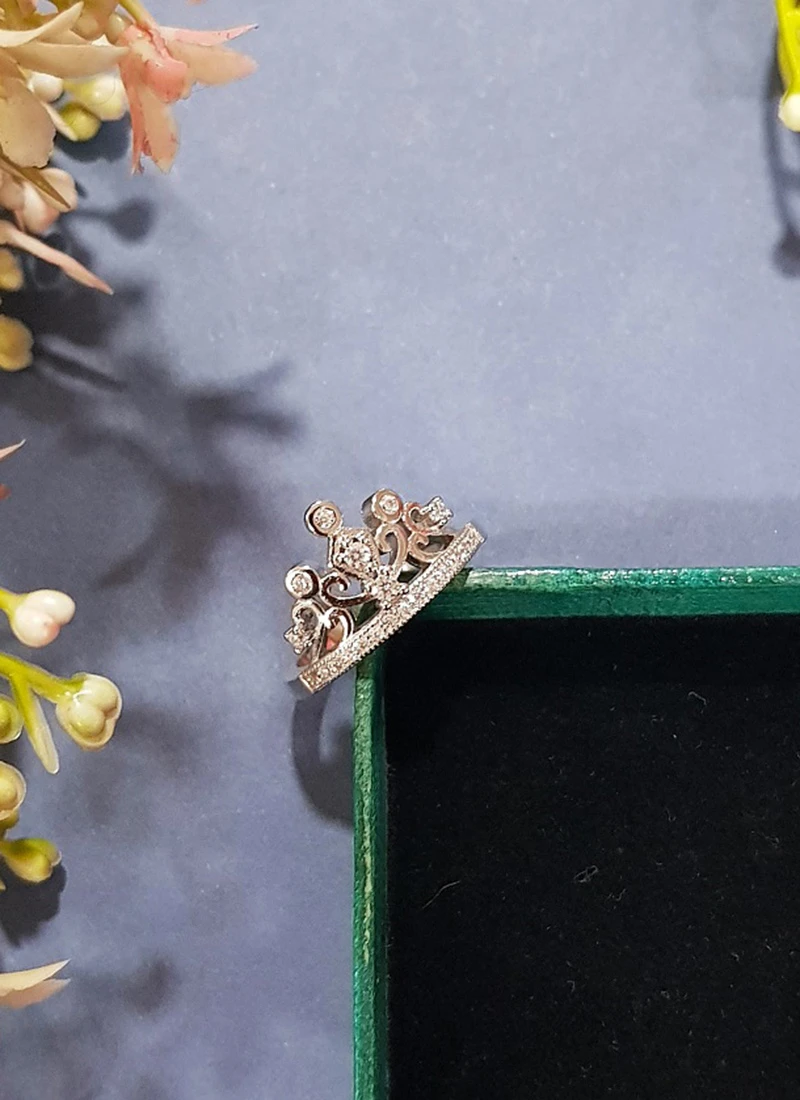The White Crown Silver Brass Ring is a stunning piece of jewelry that exudes elegance and sophistication. Crafted with meticulous attention to detail this ring showcases a perfect blend of contemporary design and timeless beauty. The ring features a striking white crownshaped gemstone which is delicately set in a highquality silver brass band.