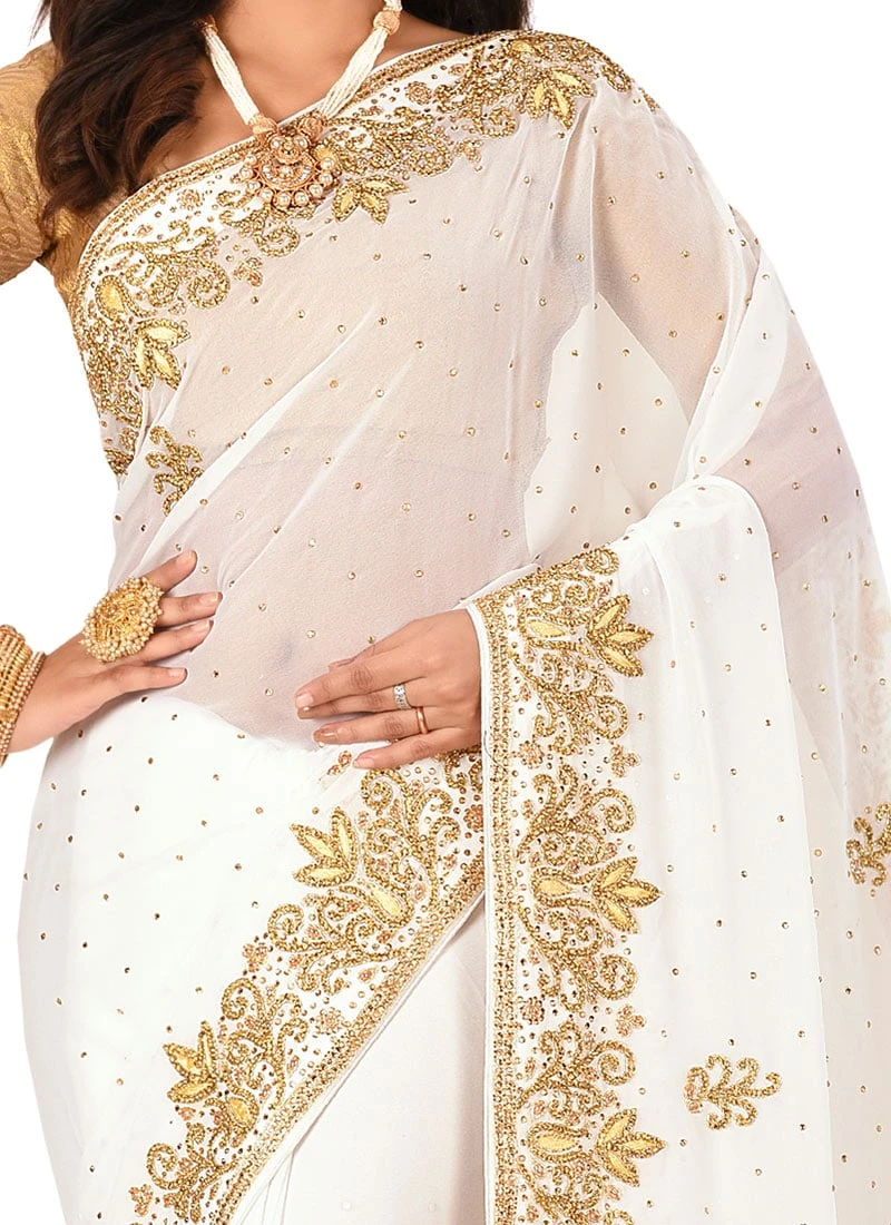 Comes with unstitched blouse fabric. To have the blouse stitched, please select the custom tailoring options. Blouses with elaborate patterns and colors are used for photo-shoot. Color and pattern of the blouse might not be as shown in the image.