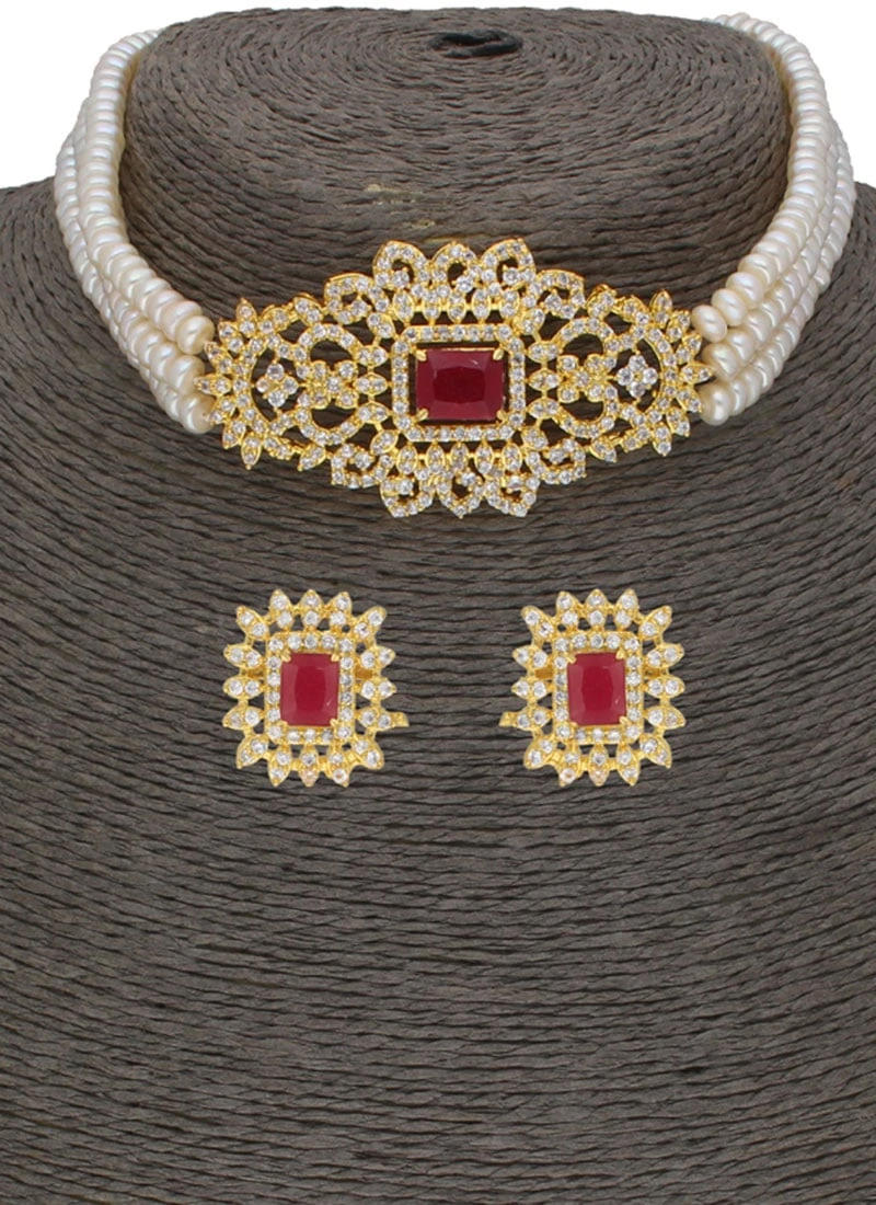 White N Maroon Designer Choker Set Party Wear