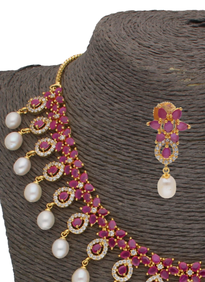 White N Pink Designer Necklae Set Party Wear - Image 2