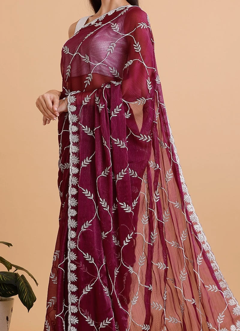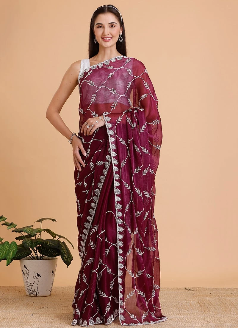 Wine Colour Jimmy Choo Handwork Saree Party Wear