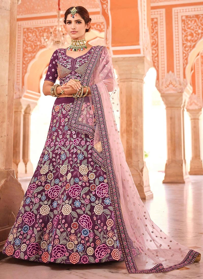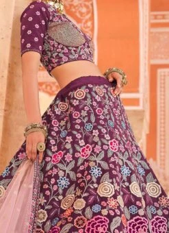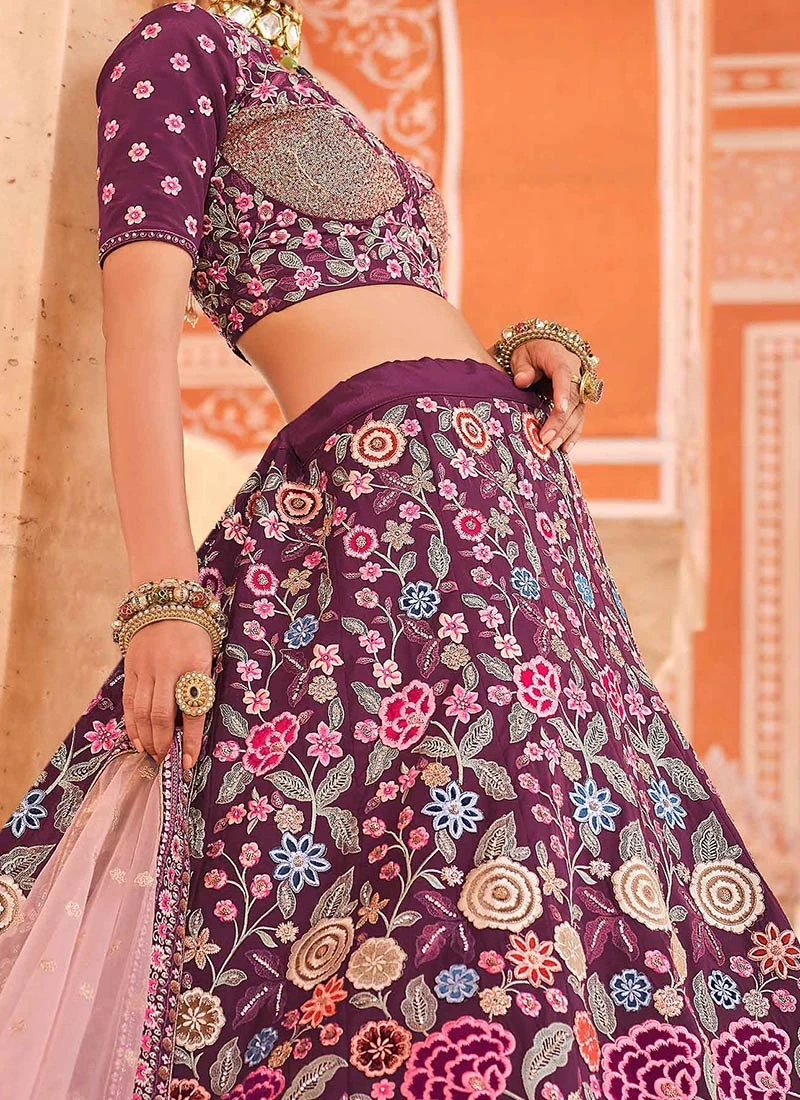 Wine Crepe Heavy Embroidered N Sequins Umbrella Lehenga Wedding Wear