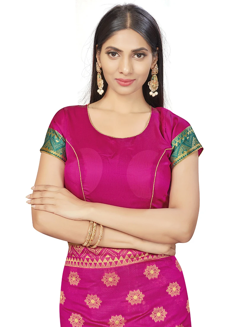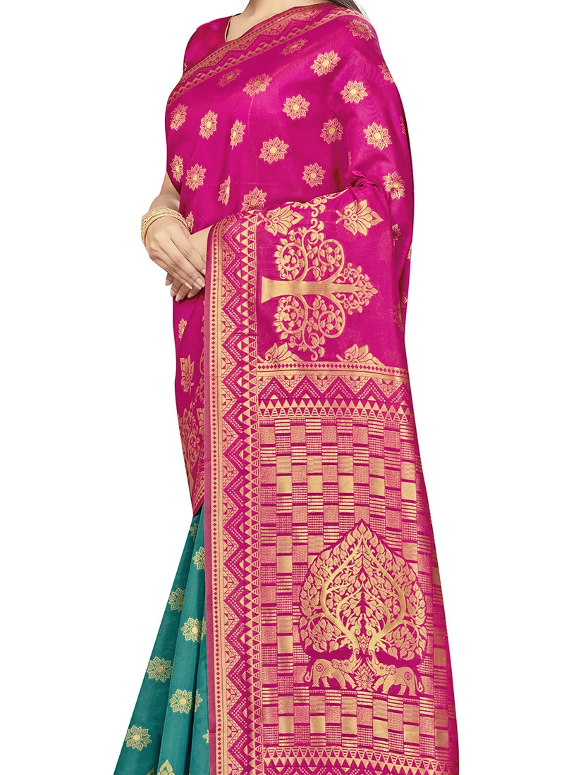 Woven Work Pink N Green Color Banarasi Silk Saree Festive Wear