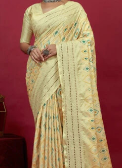 The vibrant yellow hue of this sari is the epitome of joy and positivity. Yellow is a colour associated with warmth happiness and optimism making it a perfect choice for a celebratory garment. It exudes a radiance that can instantly brighten up any occasion and complements a wide range of skin tones.